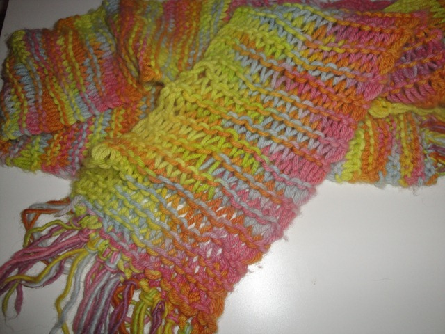 In progress right now is a doll poncho, since the scarf for Beloved Bear is now finished.