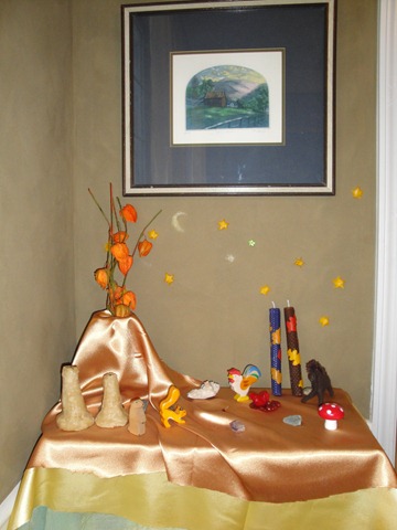 Ah, I am breaking the “no-picture” rule on my blog today to show you my schoolroom.  I do this to show you that I have a very small school room and to demonstrate that the goal truly  is NOT to re-create a Waldorf School in your home!  Sarah Baldwin over at Bella Luna Toys has a great post on that here: http://blog.bellalunatoys.com/2010/waldorf-homeschooling-letting-go-of-perfect.html