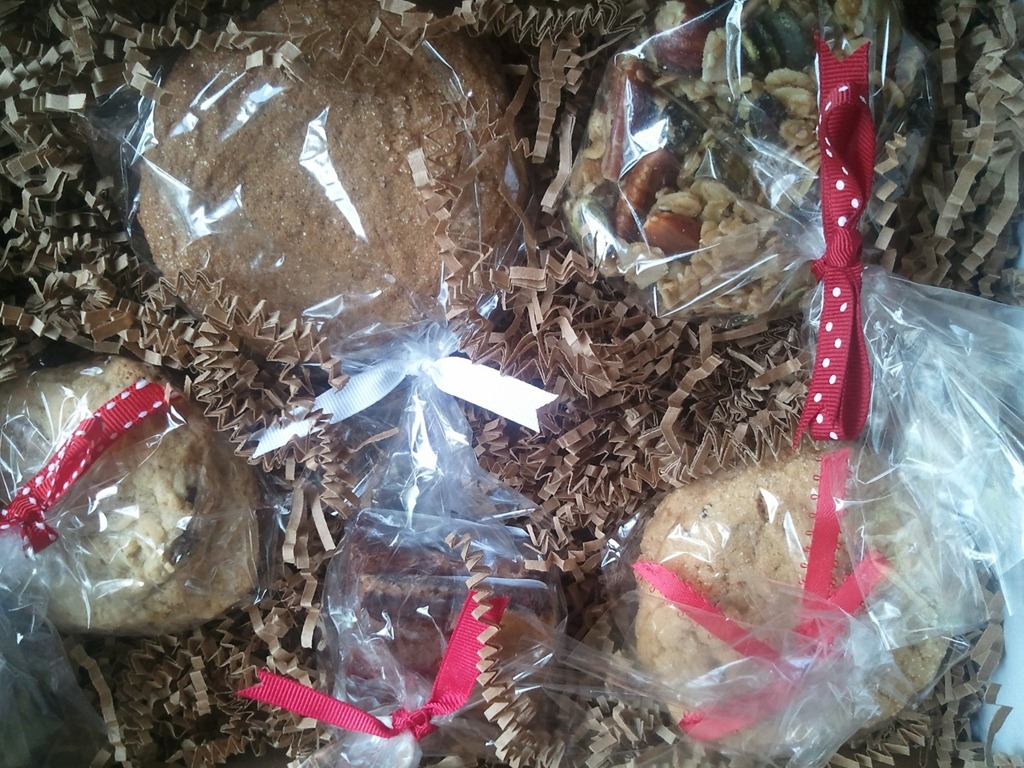 Ah, what a relief and delight for the soul in a busy season of packing and showing a house to come home to a wonderful box in the mail.  Yes, that’s right!  A gluten-free delicious sampler pack of yummy goodness from Mama Mead & Co herself (www.mamamead’s.wordpress.com).  Joy in a box!
