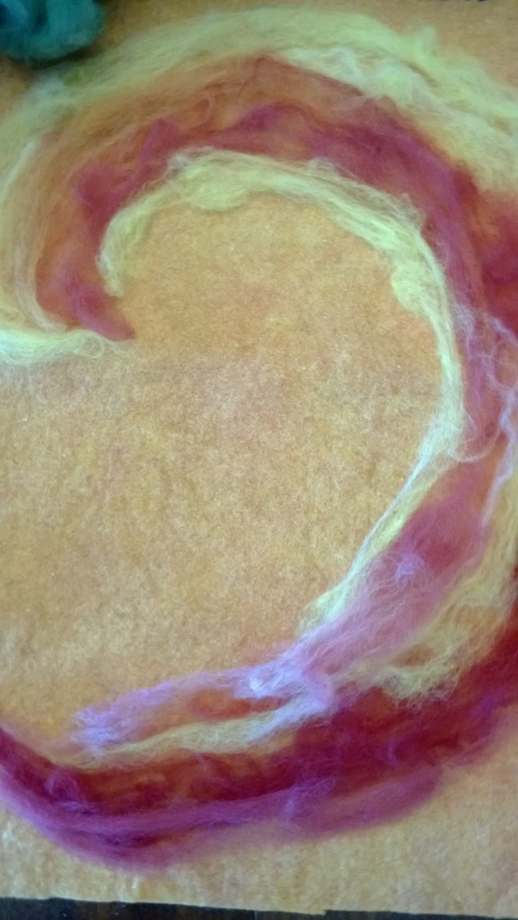 Making wool pictures is an easy project – all you need is plant-dyed wool felt for your background, plant-dyed wool roving, an iron and ironing board, and your imagination.  I order my plant dyed materials here: http://www.etsy.com/shop/mamajudes#   I don’t believe synthetically dyed materials will work  for this project.